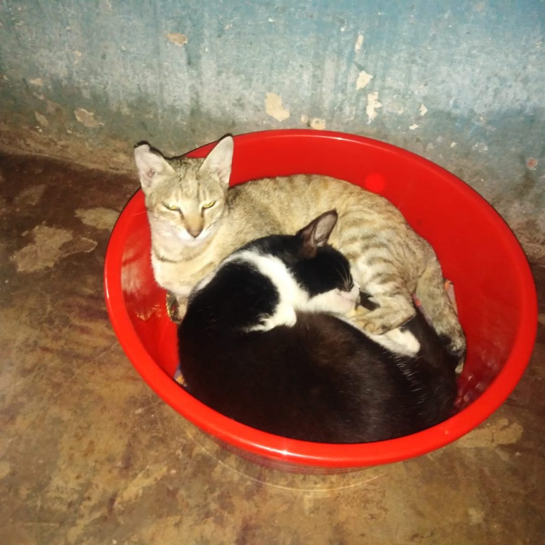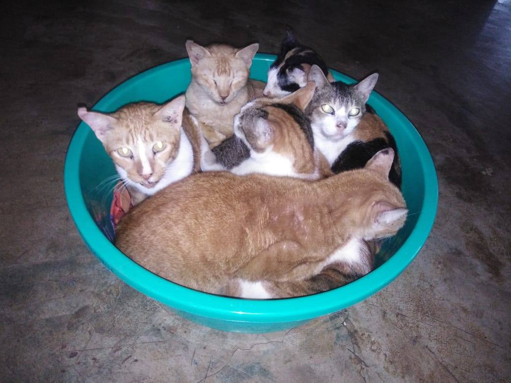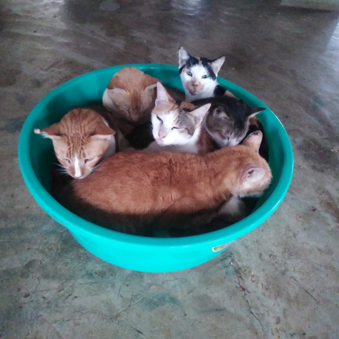 Winter is in and the Friends in Groups huddle. We have set up such tubs with warm rugs in all of the dozen special homes during these months and this is how they react.